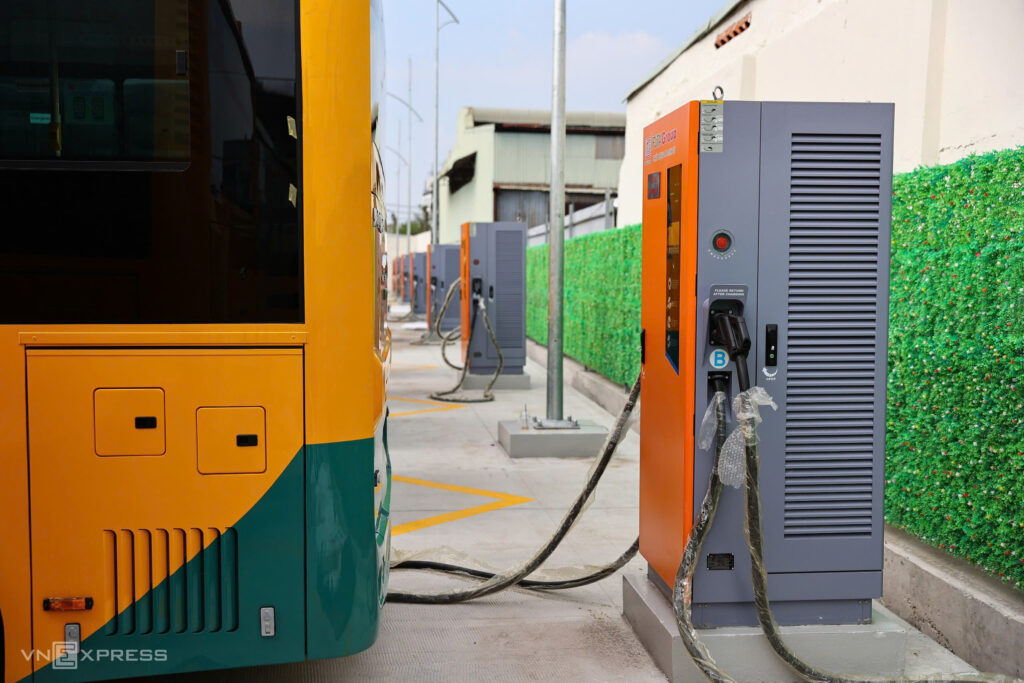 Tại trạm sạc ở bãi xe trên quốc lộ 13 có 15 trụ với hai công suất là 240 kW và 180 kW. Mỗi trụ sạc được cho hai xe buýt điện.