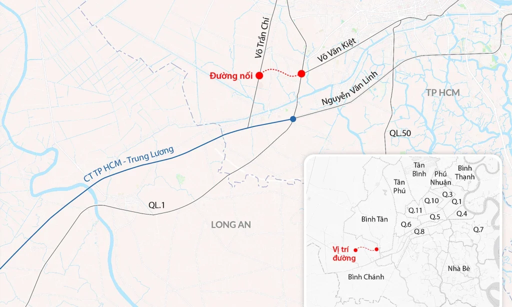 Thay vì đầu tư gần 3 km đoạn nối đại lộ Võ Văn Kiệt với cao tốc Trung Lương, thành phố tính kéo dài đoạn này nối sang Long An giúp tăng liên kết vùng.